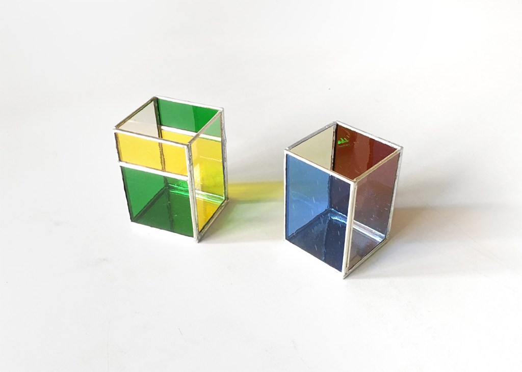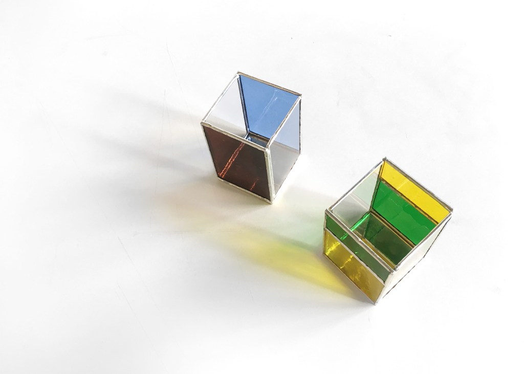 Aus buntem Ornamentglas, Klarglas und Spiegelglas entsteht in diesem Workshop ein dreidimensionales Objekt: eine kleine Glasbox, gefertigt mit der Tiffany-Technik.