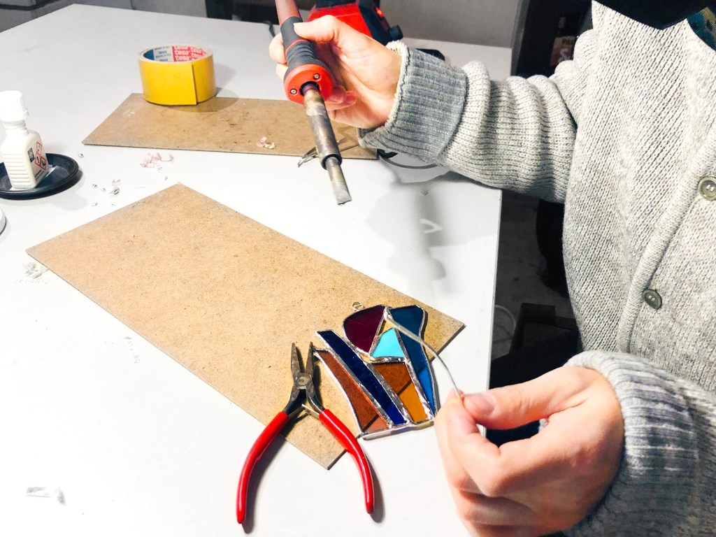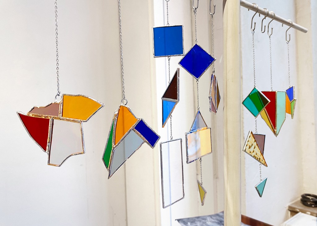 In diesem Workshop entwirfst du einen eigenen, individuellen Sonnenfänger aus farbenfrohen Glas. Gearbeitet wird in klassischer Tiffany-Technik: Glasstücke werden mit Kupferfolie umwickelt, mit bleifreiem Zinn verlötet und anschließend zu einem hängenden Objekt montiert.